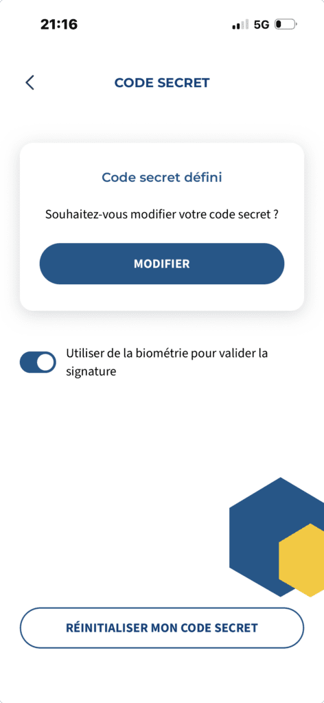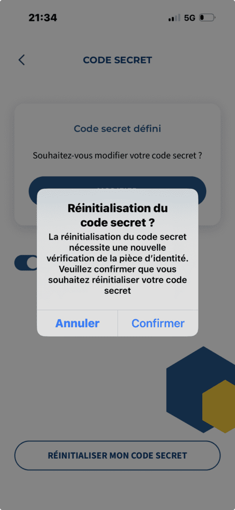 2. Appuyez sur le bouton en bas « Réinitialiser mon code secret« .