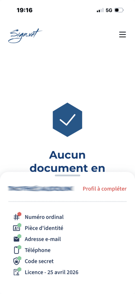 Le vétérinaire doit donc se rendre sur son application mobile, déployer l’onglet du bas qui indique « Profil à compléter » et appuyer sur « Numéro ordinal ».